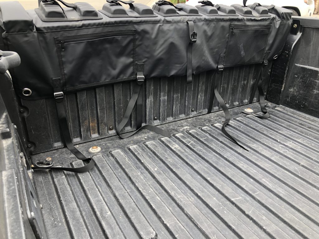 - Tailgate Pad: Tailgate pads are a convenient solution for transporting bikes in the bed of a pickup truck. I recently upgraded to a Toyota truck, so this is my absolute preferred method right now. The pad takes all of two minutes to attach to the tailgate, so it’s easy to take it on and off as needed (store it in the car while riding if you’re concerned about it going missing). It provides a cushioned surface for my bikes to rest on, protecting both my bike and truck. You can find these tailgate pads to accommodate 1-5 bikes at a time. I bought the 5 bike LEETPIC Tailgate Pad for my truck, as I’m often headed out with friends or my sons, and we can all squeeze in to one vehicle.